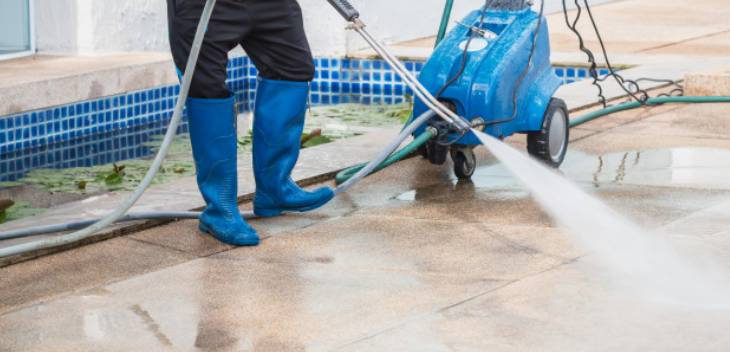 Cold Water Jet Equipment pressure of 180 bars would be used to clean up rough surfaces like Swimming Pool Decks, Driveways, Lobby Entrance, etc. Cold Water Jet equipment, pressure of 180 bars would be used to clean up these rough surfaces. This cleaning operation ensures that all particles other than that absorbed by the tiles is removed. Also, since this is the cleaning operation, no change in original colour of the tile or the shine will be observed. However, depending upon the surface, the procedure will vary.